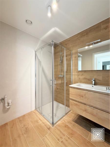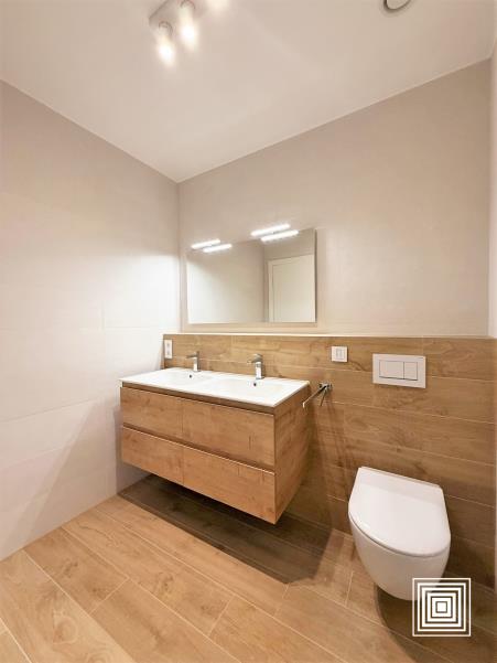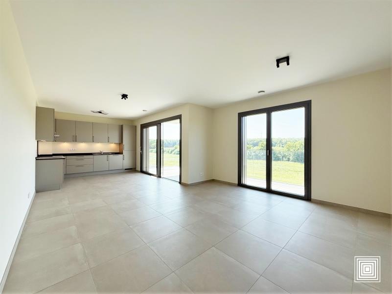 Appartement, nouvelle construction, situation exceptionnelle, dans quartier résidentiel, accès facile, vue dégagée, lumineux, belle finition, hall, vestiaire, living, balcon, cuisine américaine équipée, débarras, 2 chambres à coucher, dont 1 avec salle de douches communicante, salle de douches, WC séparé, buanderie, cave, parking intérieur.