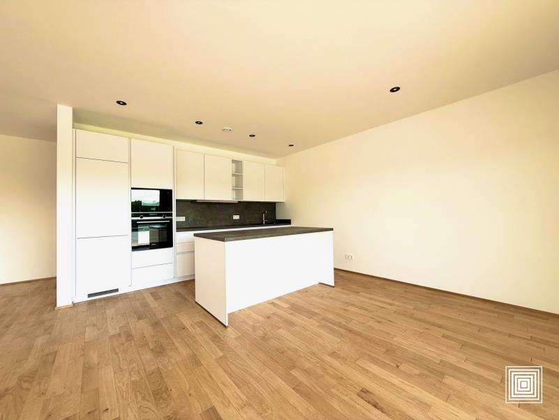 Appartement, nouvelle construction, dans quartier résidentiel, vue splendide, lumineux, finitions de haut niveau, hall, living, terrasse (22 m2), cuisine américaine équipée, 2 chambres à coucher, 2 salles de douches, WC séparé, buanderie, cave, parking intérieur, jardin privatif (37 m2, achèvement octobre 25)