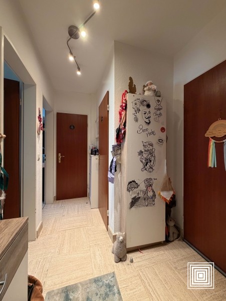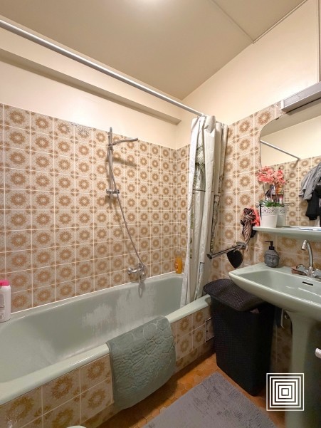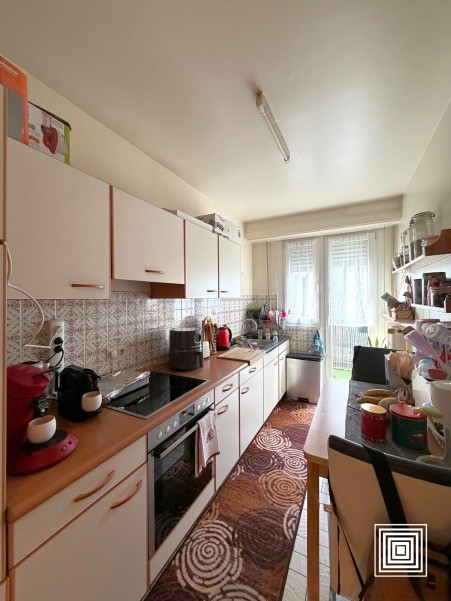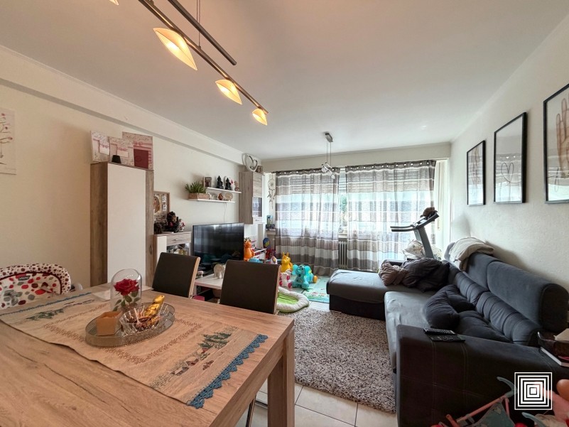 Appartement, lumineux, ±55 m2, 2e étage, ascenseur, hall, living, cuisine équipée, 1 chambre à coucher, salle de bains, WC séparé, balcon, cave, garage.