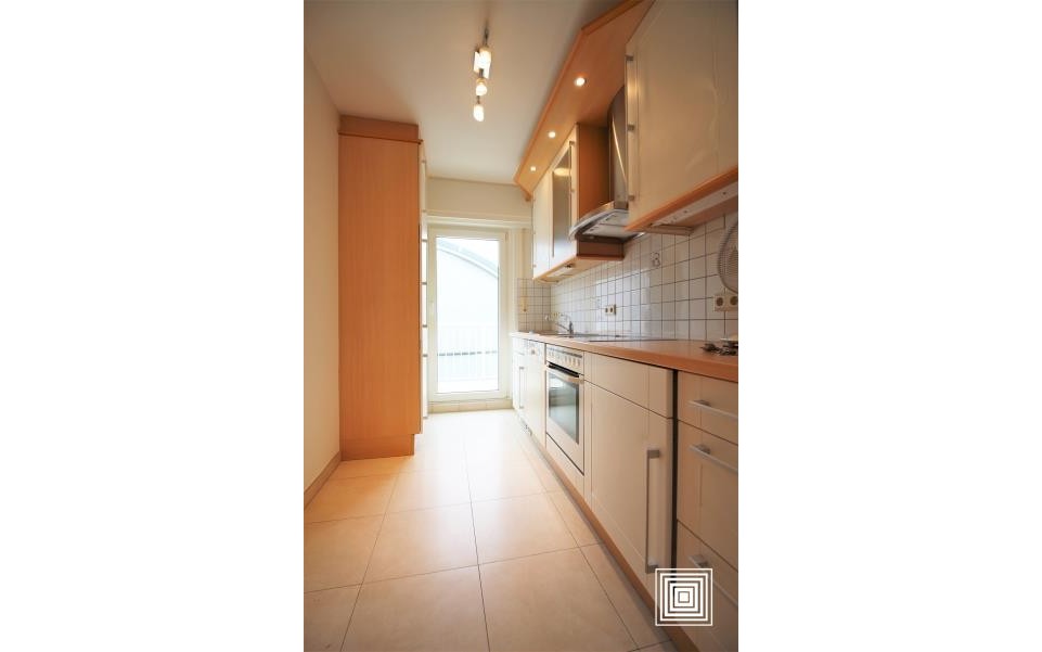 Penthouse, accès facile, en très bon état, lumineux, hall, living, terrasse, cuisine équipée, 2 chambres à coucher, salle de bains, WC séparé, cave, garage-box fermé possible contre supplément de 200€.