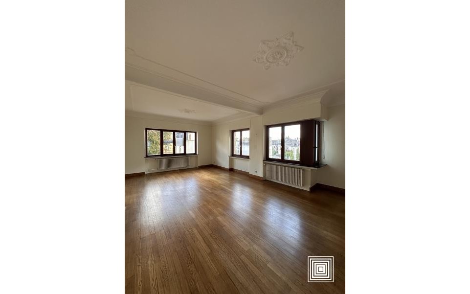 Bureau, +/- 84 m2, 2e étage, hall d'entrée, 3 bureaux dont 1 avec coin kitchenette, wc séparé, parquet, hauts plafonds, gaines techniques, fenêtres à isolation phonique, 1 cave poss. (50 EUR/mois), 1 garage (400 EUR/mois).