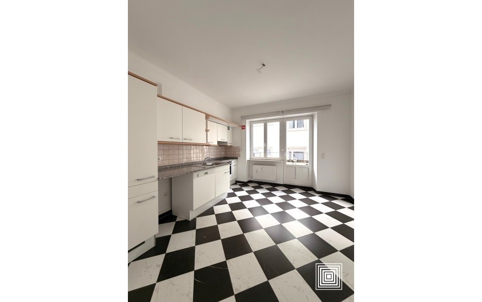 Appartement, situation centrale, accès facile, rénové, en parfait état, avec beaucoup de charme, hall, vestiaire, living, 2 balcons, cuisine équipée, 3 chambres à coucher, salle de bains avec WC, salle de douches avec WC, buanderie, cave, parking intérieur.