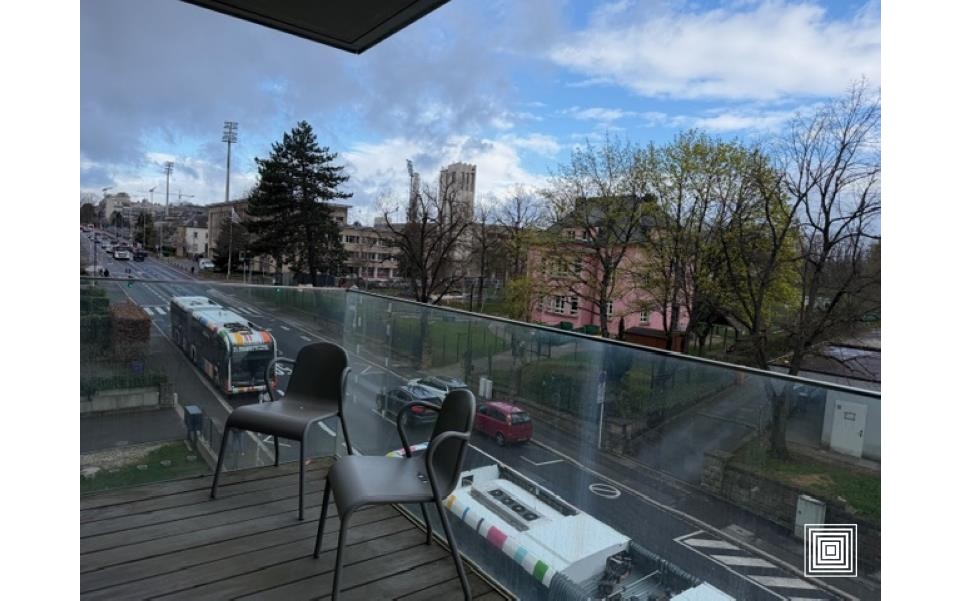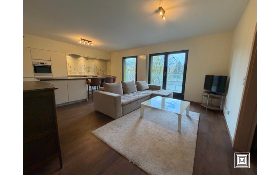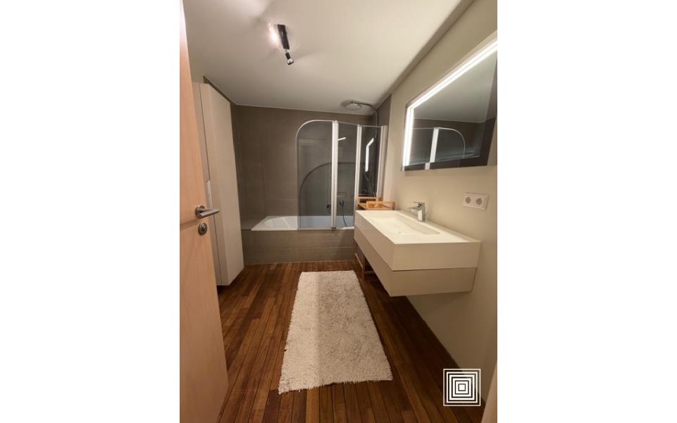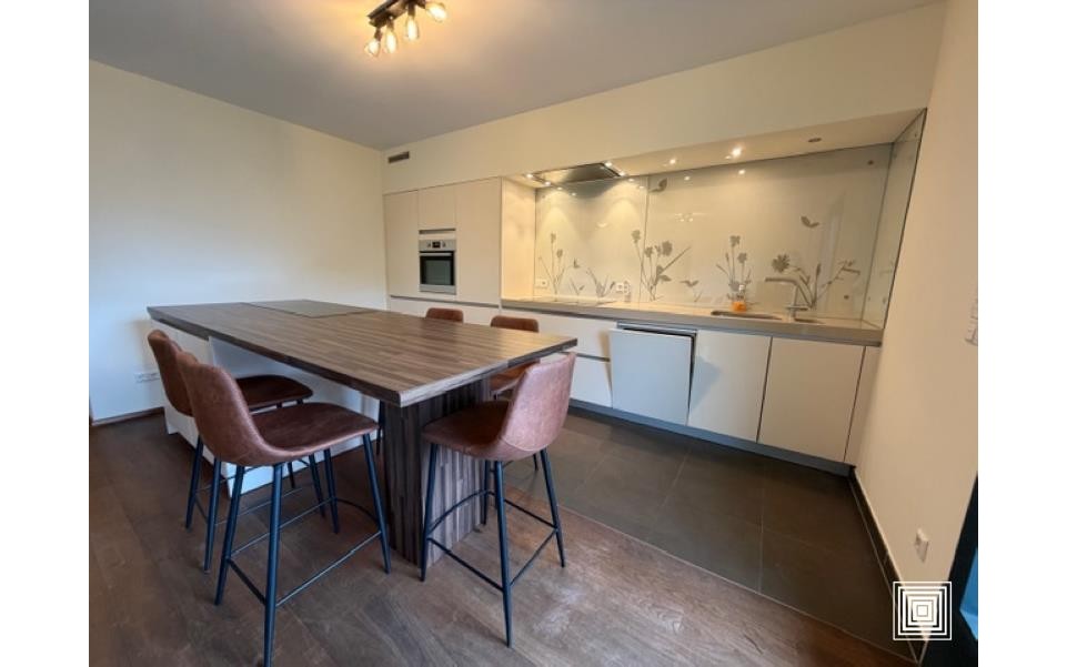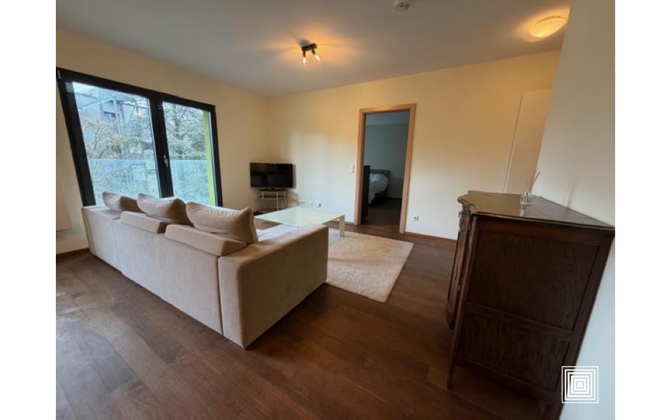 Appartement, meublé, construction récente, situation centrale, accès facile, en bon état, hall, vestiaire, living, balcon, cuisine américaine équipée, 2 débarras dont un avec lave-linge et sèche-linge, 1 chambre à coucher, salle de bains avec WC, cave, parking intérieur.