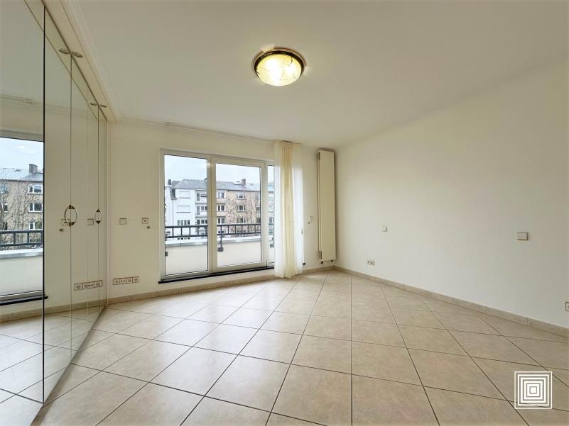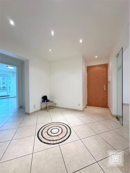 Appartement, proche du centre-ville, en très bon état, dans petite résidence, hall, placard, living, 3 balcons, cuisine équipée, 2 chambres à coucher, salle de bains (baignoire-douche) avec WC, WC séparé, buanderie, cave, 2 parkings intérieurs, jardin commun.
