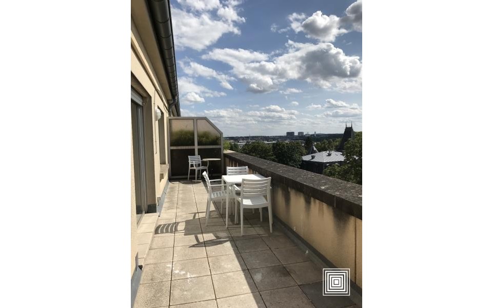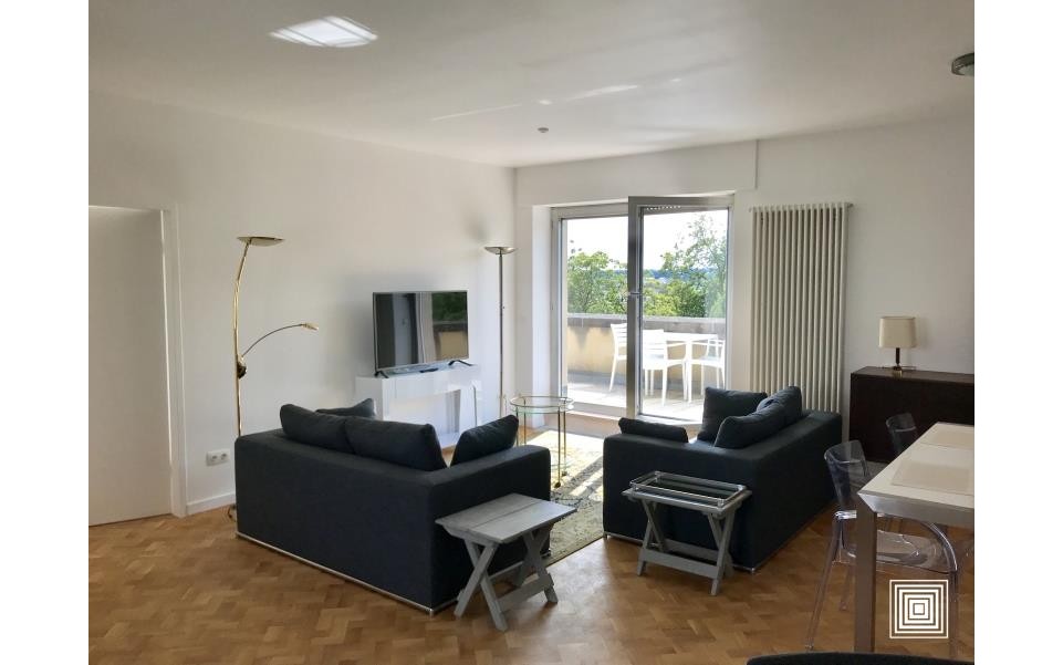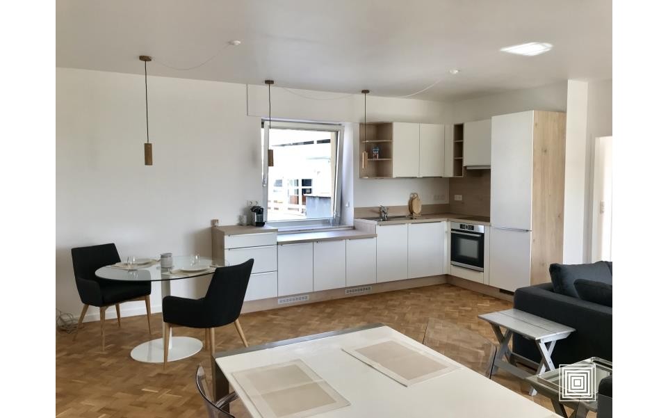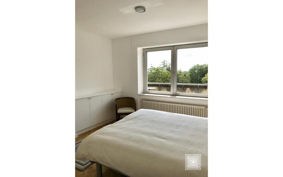 Apartment, bright, in perfect condition, last floor (6th), centrally located, park view, ±65 sqm, lift, living room, American kitchen, 1 bedroom, shower room with lavatory, large terrace, indoor parking.