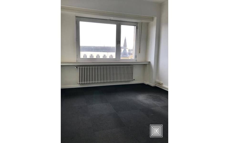 Surface de bureaux, usage mixte, ±90 m2, 6e étage, ascenseur, en plein centre-ville, en bon état, travaux de rafraîchissement à prévoir, vue dégagée, lumineuse, hall, 3 pièces, cuisine, salle de bains avec WC, WC séparé, balcon, cave, parking intérieur.