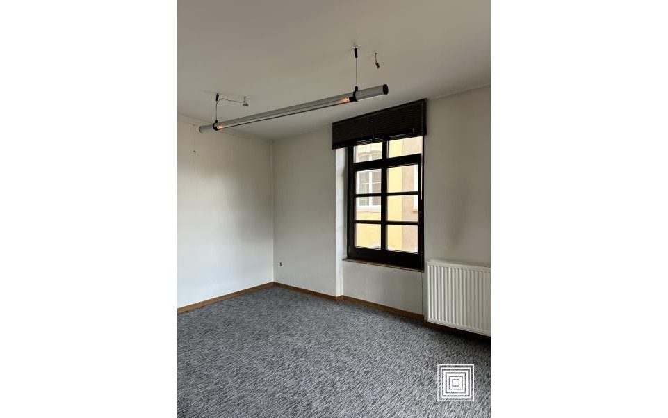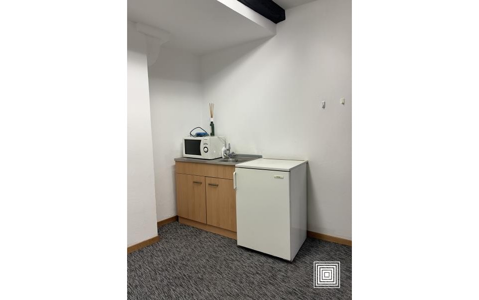 Surface de bureaux, ±80 m2, hall, 4 pièces, kitchenette, WC séparé, cave, emplacement de parking intérieur (380 €/empl.).