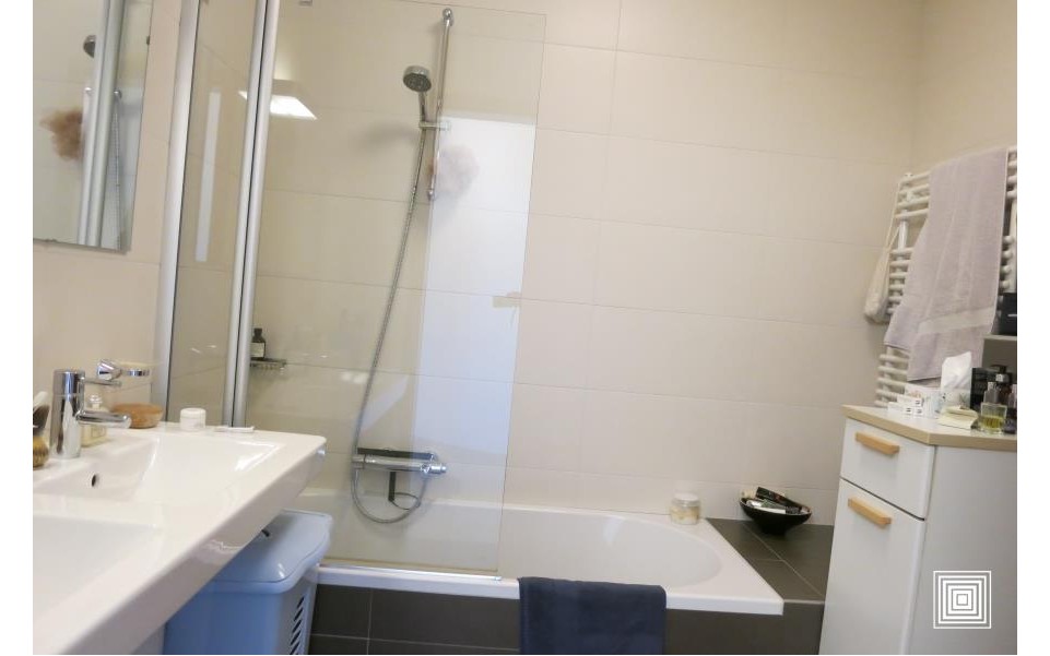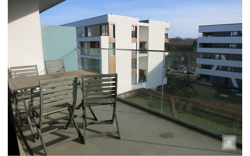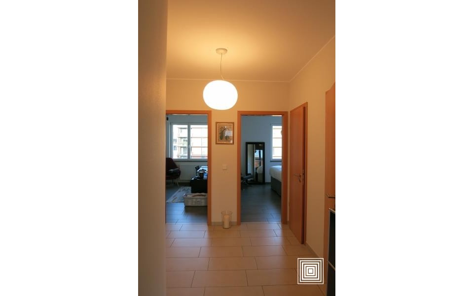 Appartement, construction récente, accès facile, hall, living, cuisine équipée, 2 chambres à coucher, salle de bains, WC séparé, buanderie, cave, parking intérieur.