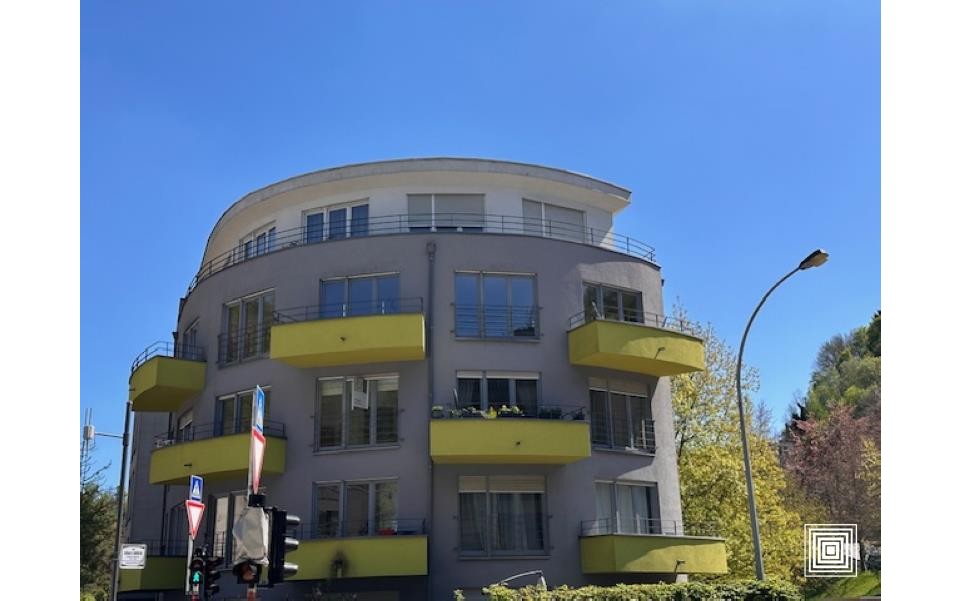 Appartement, spacieux et lumineux, dans quartier résidentiel, accès facile, hall, living, cuisine équipée, grand balcon avec vue dégagée, 2 chambres à coucher, salle de bains avec WC, WC séparé, cave, garage, piscine intérieure et sauna dans l'immeuble.