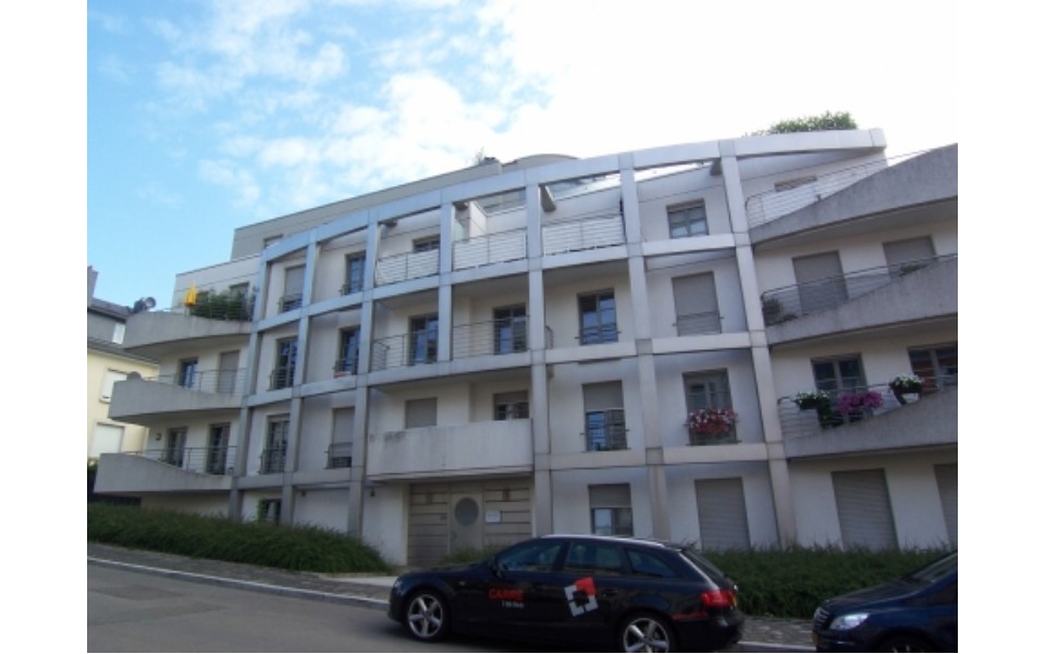 Appartement, spacieux et lumineux, dans quartier résidentiel, accès facile, hall, living, cuisine équipée, grand balcon avec vue dégagée, 2 chambres à coucher, salle de bains avec WC, WC séparé, cave, garage, piscine intérieure et sauna dans l'immeuble.