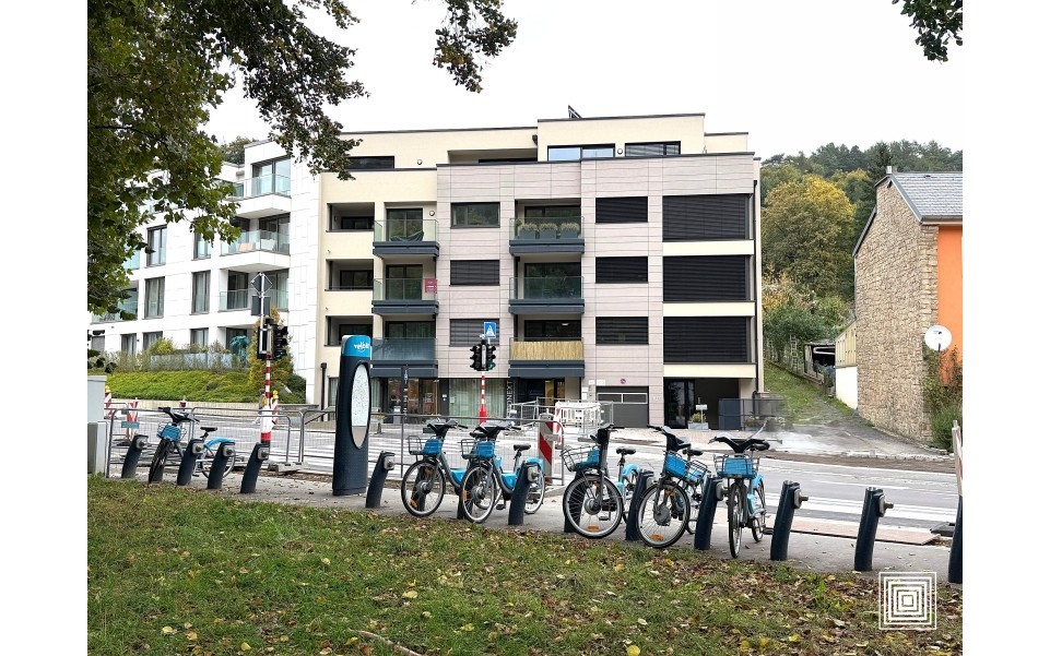 Appartement, proche du centre-ville, proche des institutions européennes, quartier calme, ascenseur, hall, vestiaire, living, balcon, 1 chambre à coucher, salle de bains avec WC, WC séparé, buanderie, cave, parking intérieur, jardin privatif.