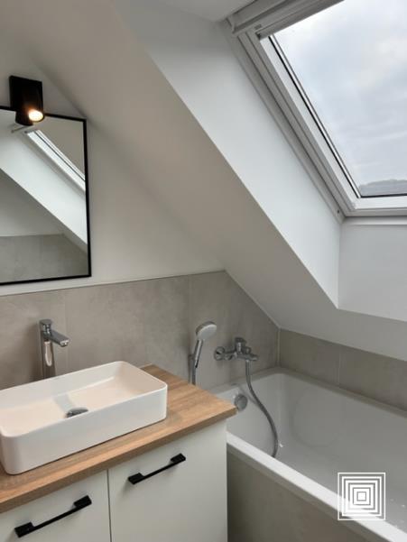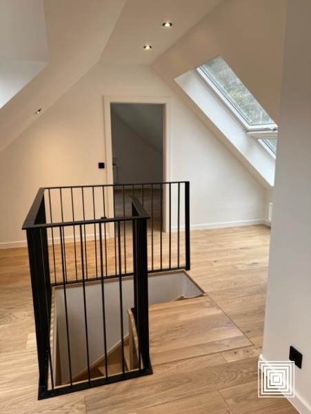 Duplex, proche du centre-ville, accès facile, proche des institutions européennes, dans quartier résidentiel, entièrement rénové en 2023, hall, placard, living, balcon, cuisine américaine équipée, 3 chambres à coucher, salle de bains, salle de douches, 2 WC séparés, cave, parking intérieur.