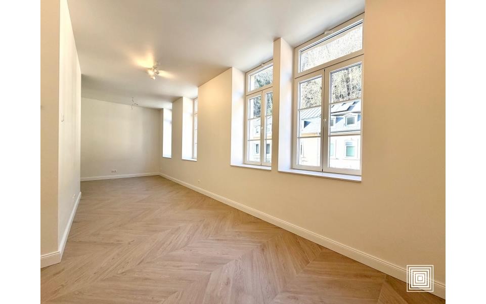 Duplex, proche du centre-ville, accès facile, proche des institutions européennes, dans quartier résidentiel, entièrement rénové en 2023, hall, placard, living, balcon, cuisine américaine équipée, 3 chambres à coucher, salle de bains, salle de douches, 2 WC séparés, cave, parking intérieur.
