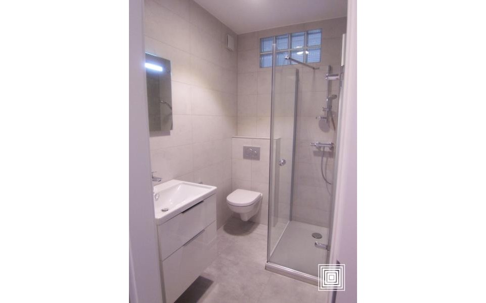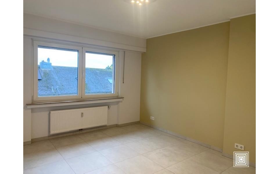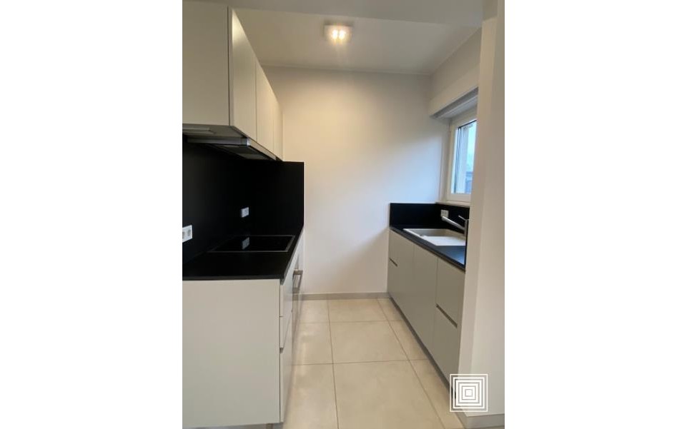 Appartement, lumineux et moderne, entièrement rénové, situé à l'arrière de l'immeuble, accès facile, hall avec vestiaire, living, cuisine américaine équipée, 1 chambre à coucher, salle de douches avec WC, cave, buanderie, garage.