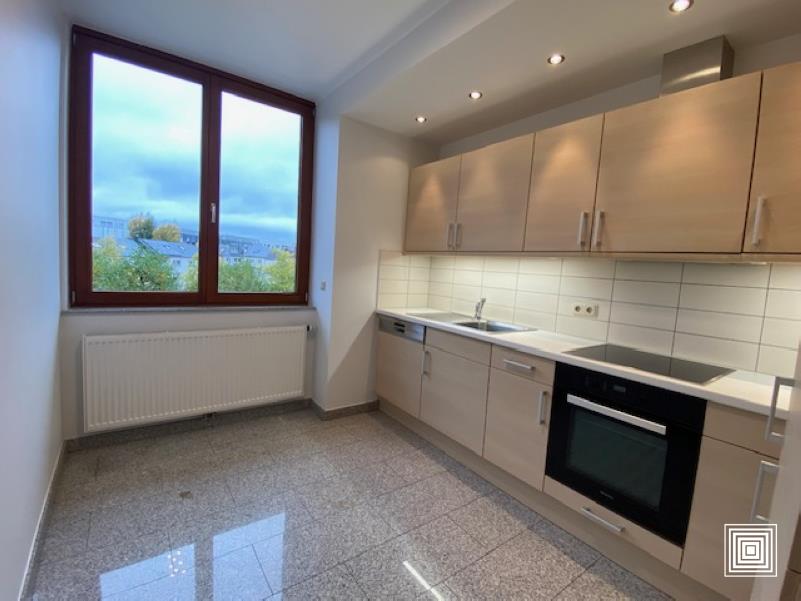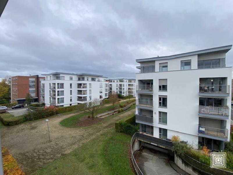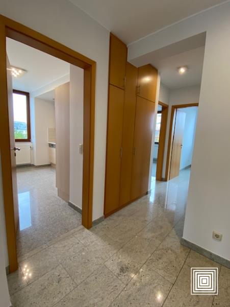 Appartement, proche du centre-ville, proche des institutions européennes, accès facile, en parfait état, lumineux, hall, placard, living, grand balcon, cuisine équipée, 2 chambres à coucher, salle de bains avec WC, WC séparé, buanderie, cave, parking intérieur.