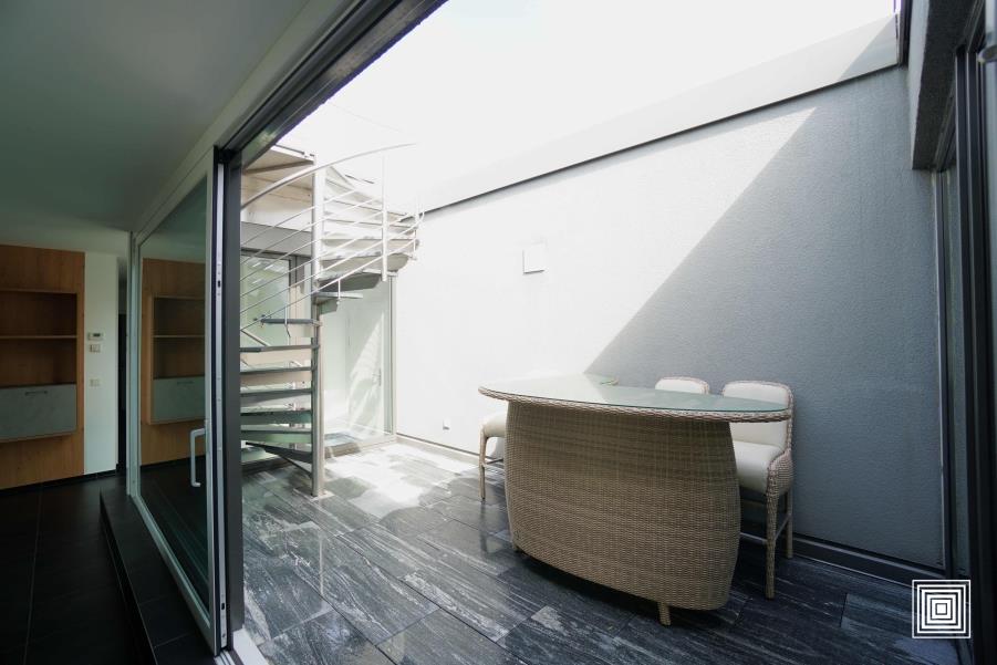 Appartement, proche du centre-ville, proche des institutions européennes, quartier calme, accès facile, dernier étage, en très bon état, ascenseur, hall, living, cuisine américaine équipée, hall de nuit, 3 chambres à coucher, dont 1 avec salle de douches/WC communicante et dressing, salle de bains, WC séparé, 2 grandes terrasses, cave, buanderie, parking intérieur, jardin commun.
