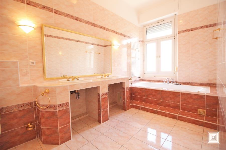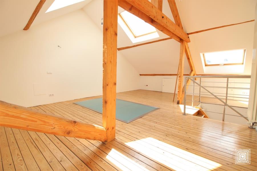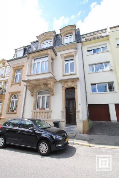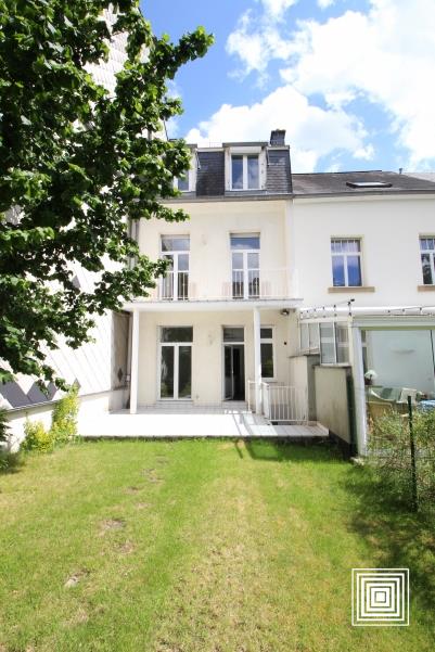 Maison, proche du centre-ville, quartier calme, en très bon état, avec beaucoup de charme, hall, living, terrasse, cuisine équipée, coin-repas, débarras, 4 chambres à coucher, grande pièce sous toit, salle de bains, 2 salles de douches, buanderie, chaufferie, cave, beau jardin, garage (box) dans résidence en face.