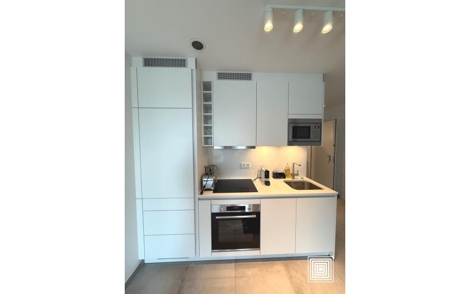Studio, möbliert und ausgestattet, nahe am Stadtzentrum, kürzlich fertiggestelltes Gebäude, modern, hell, Lift, Diele, Wohnraum, Anbauküche, Balkon, Duschbad mit WC, Waschküche, Keller.