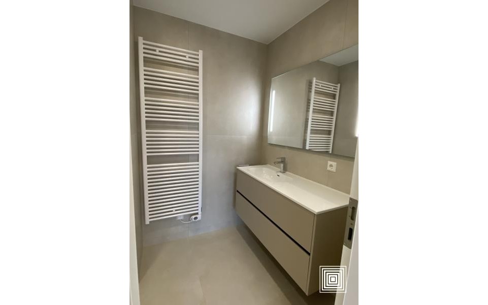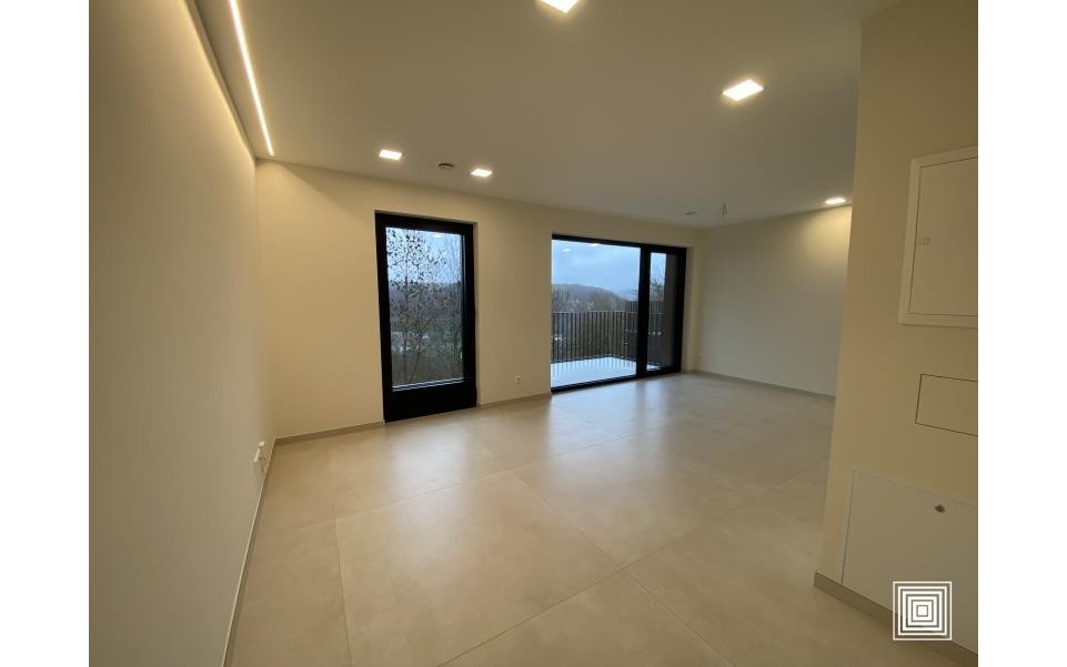 Appartement, nouvelle construction, situation exceptionnelle, dans quartier résidentiel, accès facile, avec beaucoup de charme, hall, living, balcon, cuisine américaine équipée, 1 chambre à coucher, salle de douches avec WC, WC séparé, buanderie, cave.