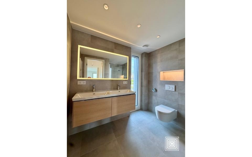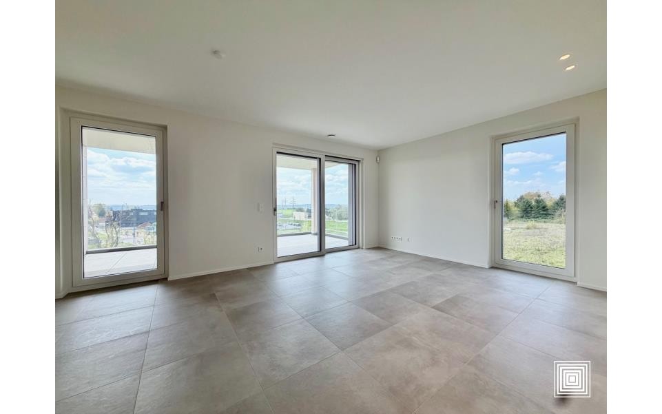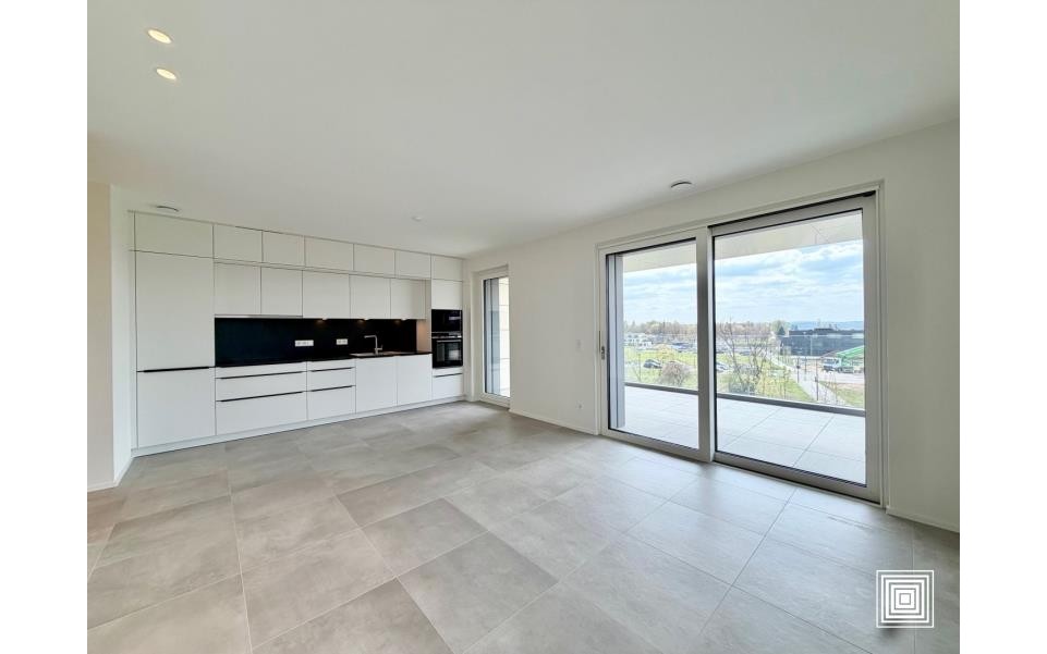 Appartement, nouvelle construction, accès facile, lumineux, finitions de haut niveau, hall, vestiaire, living, cuisine américaine équipée, débarras, 2 chambres à coucher, salle de douches avec WC, WC séparé, grande terrasse, buanderie, cave, parking intérieur.