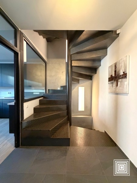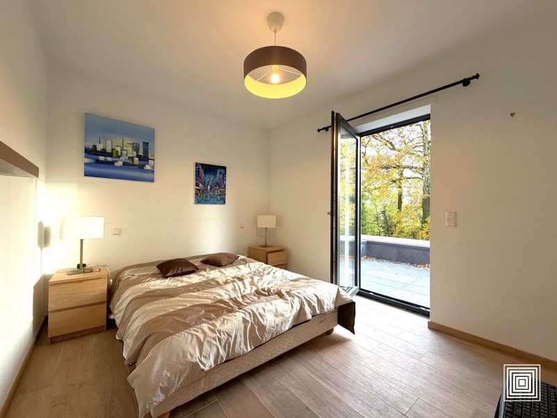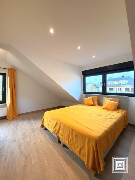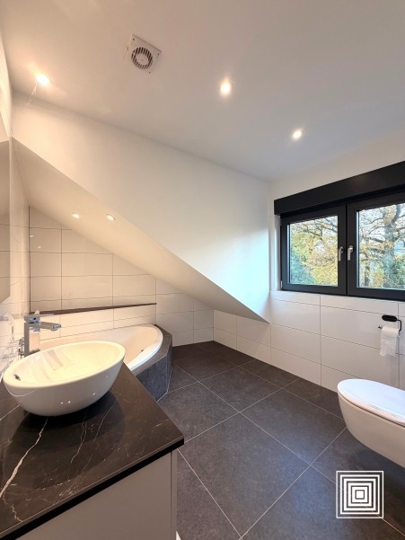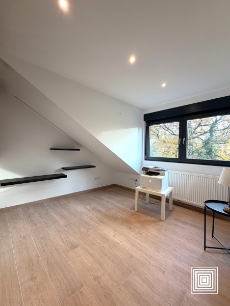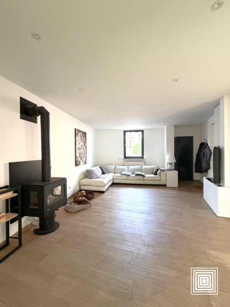 Doppelhaushälfte, modern, 10 min. vom Stadtzentrum entfernt, auf einem Grundstück von 2,19 Ar, vollständig renoviert, hell, ±185 m2, Lift, Diele, grosszügiges Wohnzimmer, Ofen, Esszimmer, Einbauküche, 6 Schlafzimmer, 2 Bäder, Gäste WC, Keller, Garage, 2 Terrassen, eingezäunter Garten, Südlage.