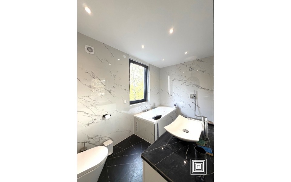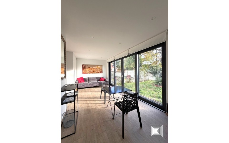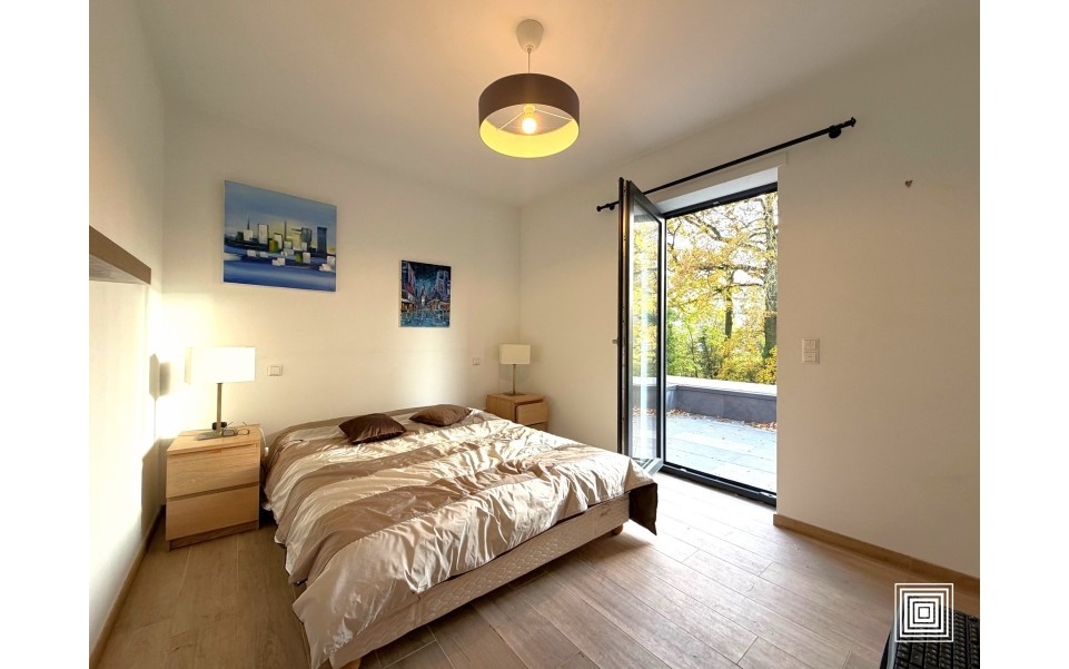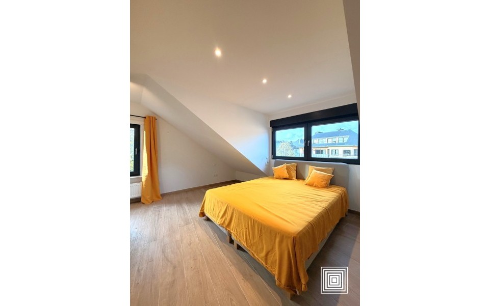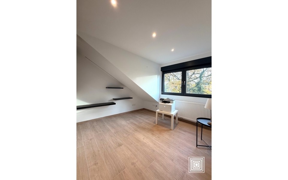Doppelhaushälfte, modern, 10 min. vom Stadtzentrum entfernt, auf einem Grundstück von 2,19 Ar, vollständig renoviert, hell, ±185 m2, Lift, Diele, grosszügiges Wohnzimmer, Ofen, Esszimmer, Einbauküche, 6 Schlafzimmer, 2 Bäder, Gäste WC, Keller, Garage, 2 Terrassen, eingezäunter Garten, Südlage.