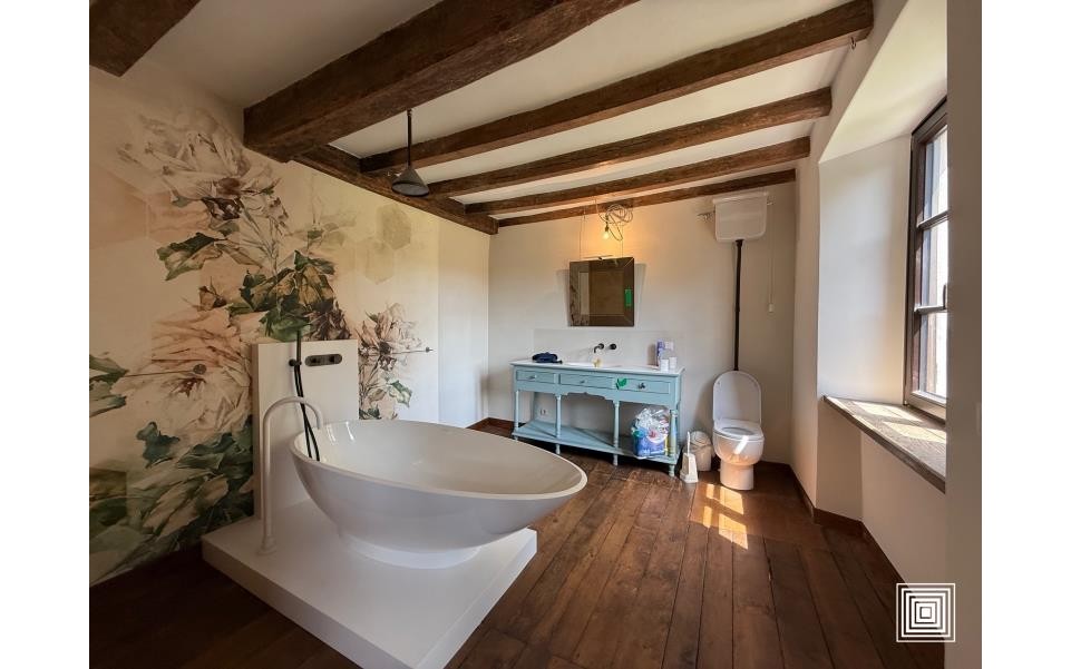 Maison de campagne, partiellement meublée, situation idyllique, très beau terrain, rénovée, avec beaucoup de charme, hall, living, salle à manger, terrasse, cuisine équipée, cheminée, 3 chambres à coucher, salle de bains avec WC, salle de douches avec WC, annexes, parking extérieur, garage, beau jardin.