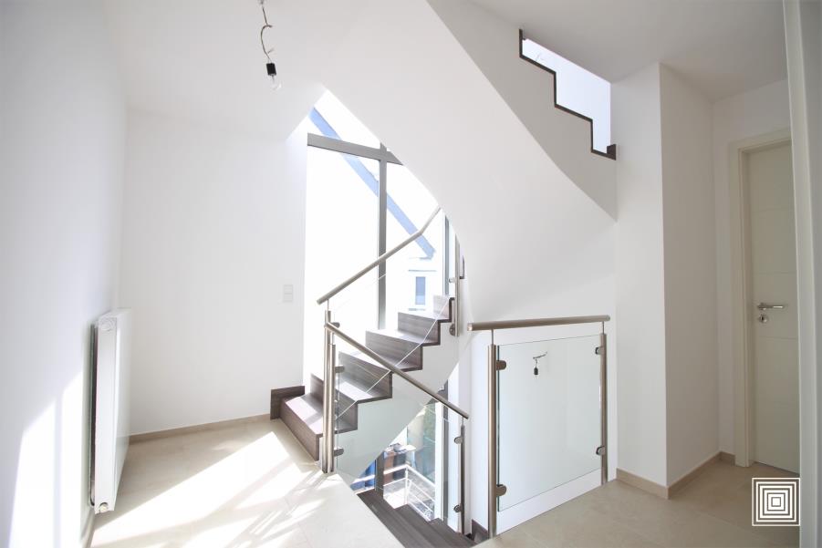 Maison jumelée, construction récente, situation exceptionnelle, accès facile, lumineuse, finitions de haut niveau, hall, living, terrasse, cuisine américaine équipée, 4 chambres à coucher, bureau, salle de bains, salle de douches, WC séparé, buanderie, garage 3 voitures.