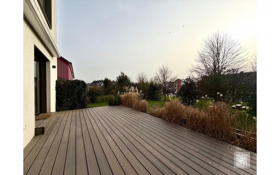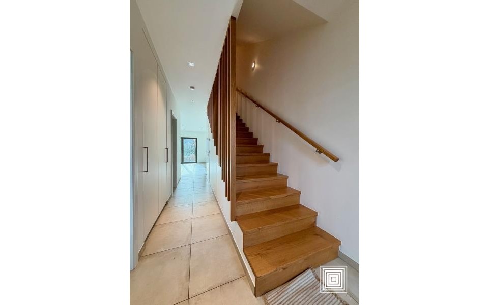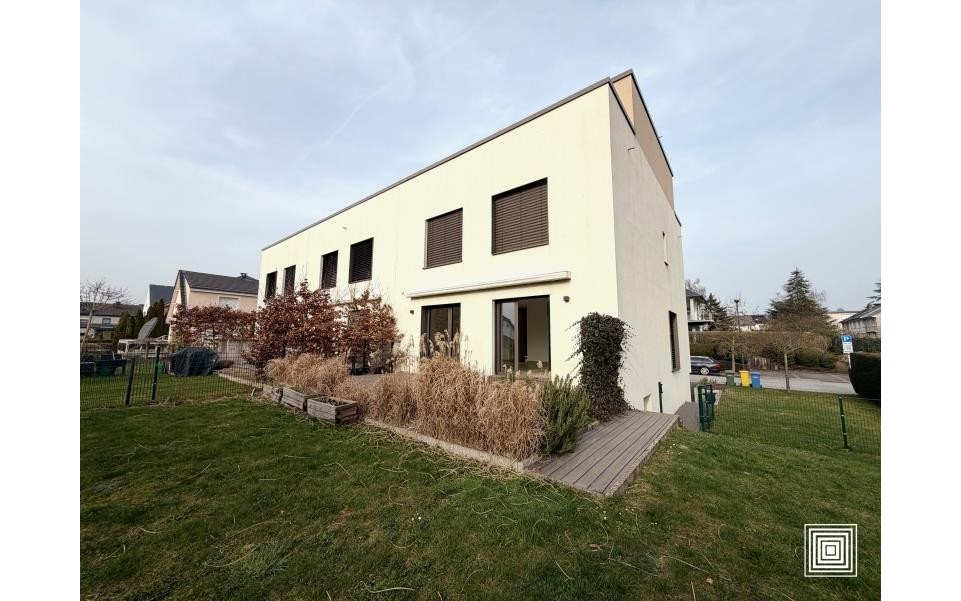 Maison jumelée, construction récente, proche du centre-ville, dans quartier résidentiel, quartier calme, accès facile, hall, placard, living, 2 balcons, terrasse, cuisine américaine équipée, 4 chambres à coucher, salle de bains, 2 salles de douches, WC séparé, buanderie, cave, grenier, garage.