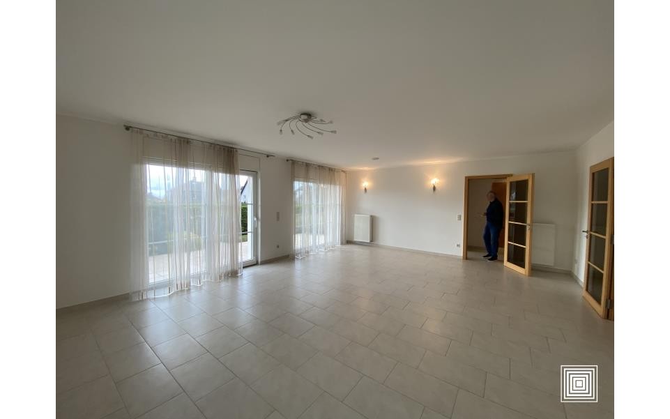 Appartement, proche du centre-ville, dans quartier résidentiel, quartier calme, accès facile, hall, living, terrasse, cuisine équipée, débarras, 3 chambres à coucher, salle de bains, salle de douches, WC séparé, buanderie, cave, garage (2 voitures) avec borne de recharge, jardin privatif.