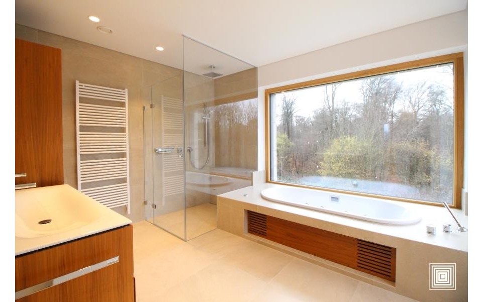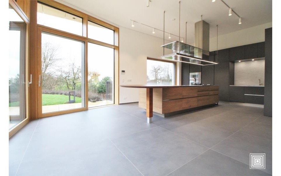 Villa, représentative, finition luxueuse, construction récente, dans quartier résidentiel, hall, vestiaire, living, cheminée, salle à manger/cuisine équipée, 4 chambres à coucher, bureau, 2 salles de douches, salle de bains avec WC, 2 WC séparés, hobby room, 2 grandes terrasses, buanderie, 2 caves, cave à vin, magnifique jardin, sauna, garage 2 voitures.