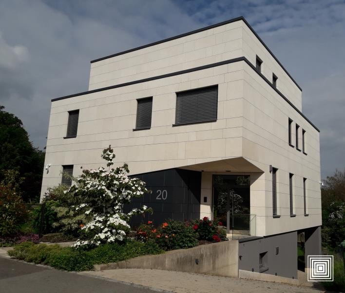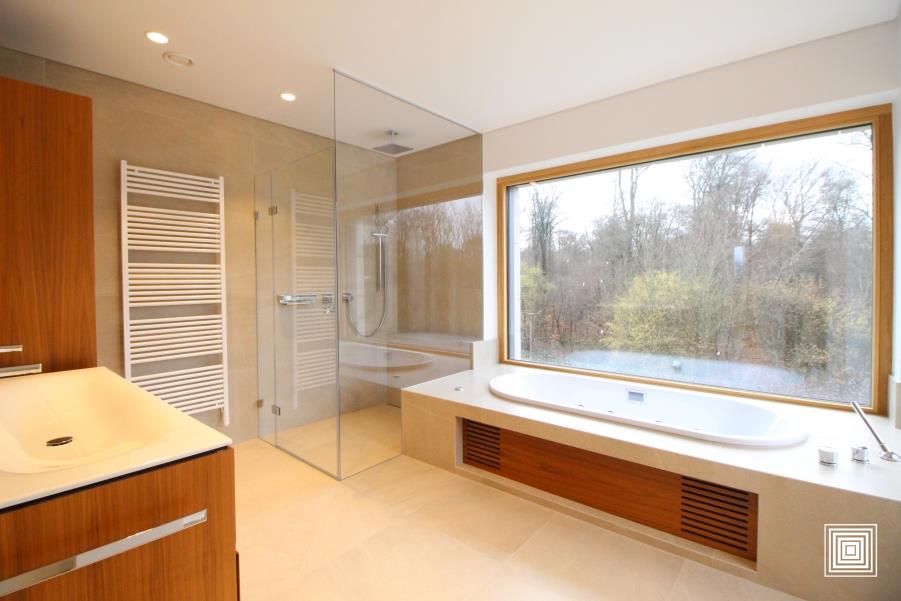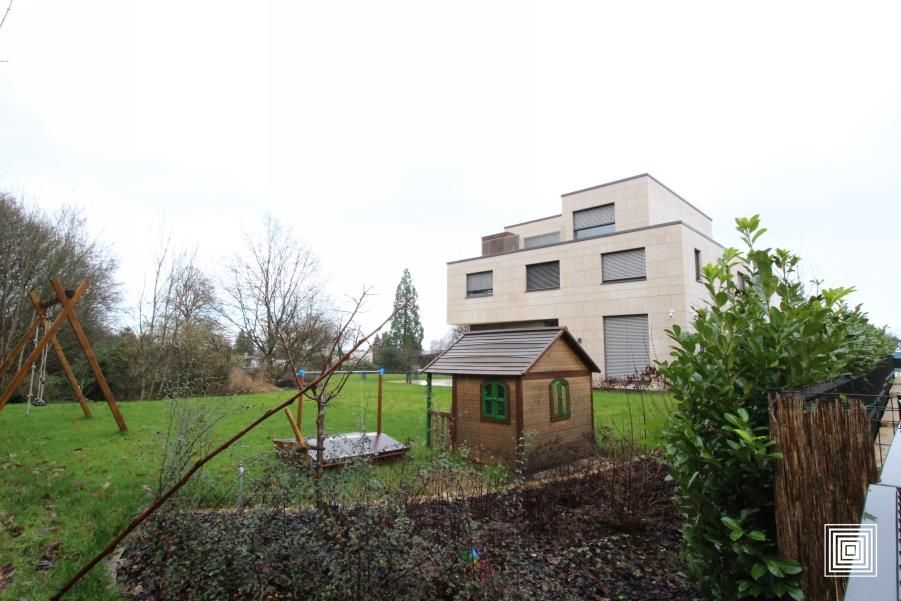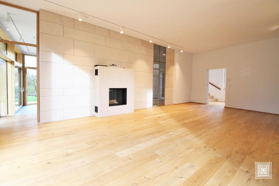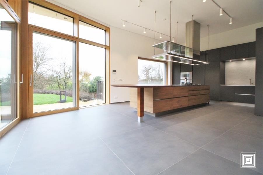 Villa, représentative, finition luxueuse, construction récente, dans quartier résidentiel, hall, vestiaire, living, cheminée, salle à manger/cuisine équipée, 4 chambres à coucher, bureau, 2 salles de douches, salle de bains avec WC, 2 WC séparés, hobby room, 2 grandes terrasses, buanderie, 2 caves, cave à vin, magnifique jardin, sauna, garage 2 voitures.