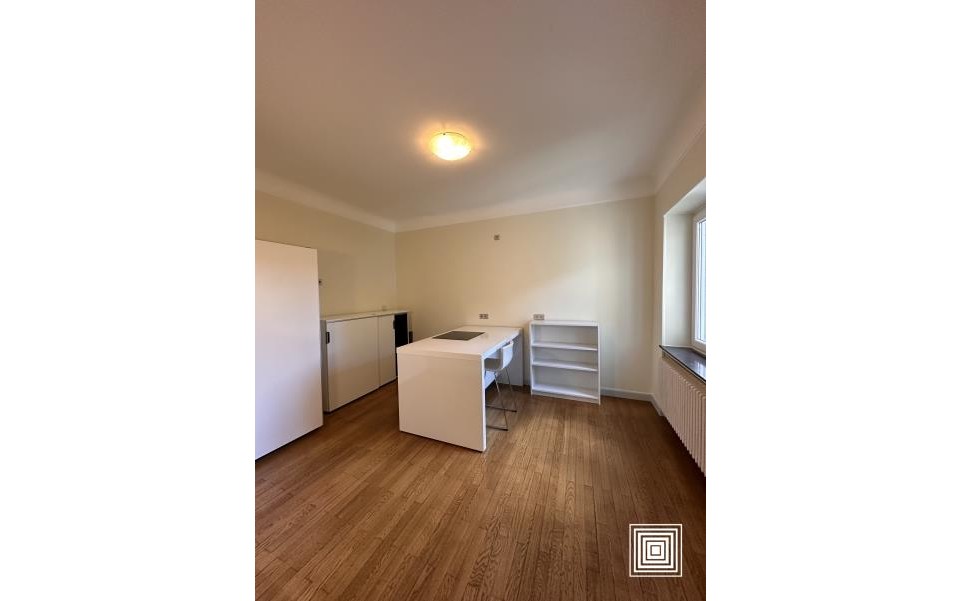 Bureau, +/- 84 m2, 2e étage, hall d'entrée, 3 bureaux dont 1 avec coin kitchenette, wc séparé, parquet, hauts plafonds, gaines techniques, fenêtres à isolation phonique, 1 cave poss. (50 EUR/mois), 1 garage (400 EUR/mois).