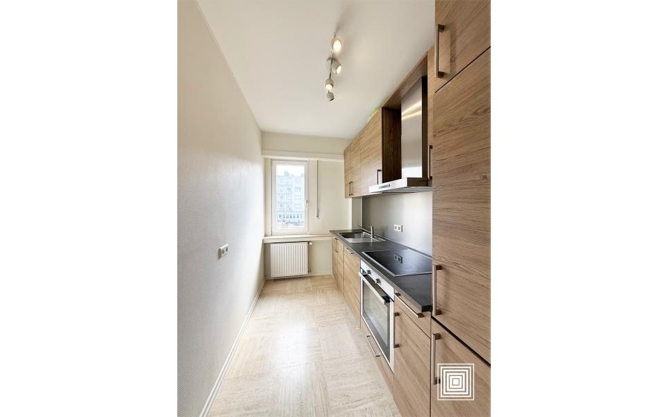 Appartement, lumineux, en plein centre-ville, ±53 m2, 3e étage, ascenseur, hall, living, cuisine équipée, 1 chambre à coucher, salle de douches, cave.