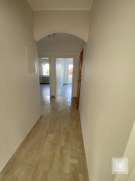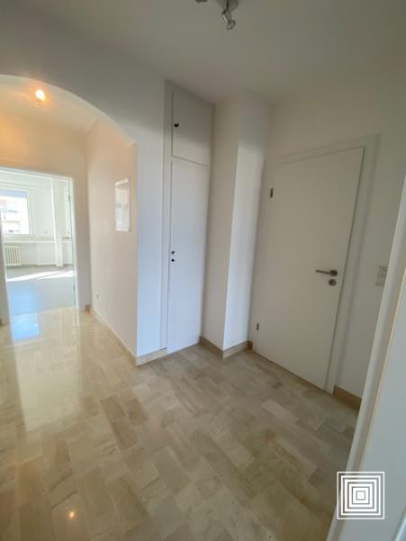 Appartement, rénové, spacieux, lumineux, dans quartier résidentiel, hall, living, balcon, débarras, 1 chambre à coucher, salle de douches, cave, buanderie, garage.