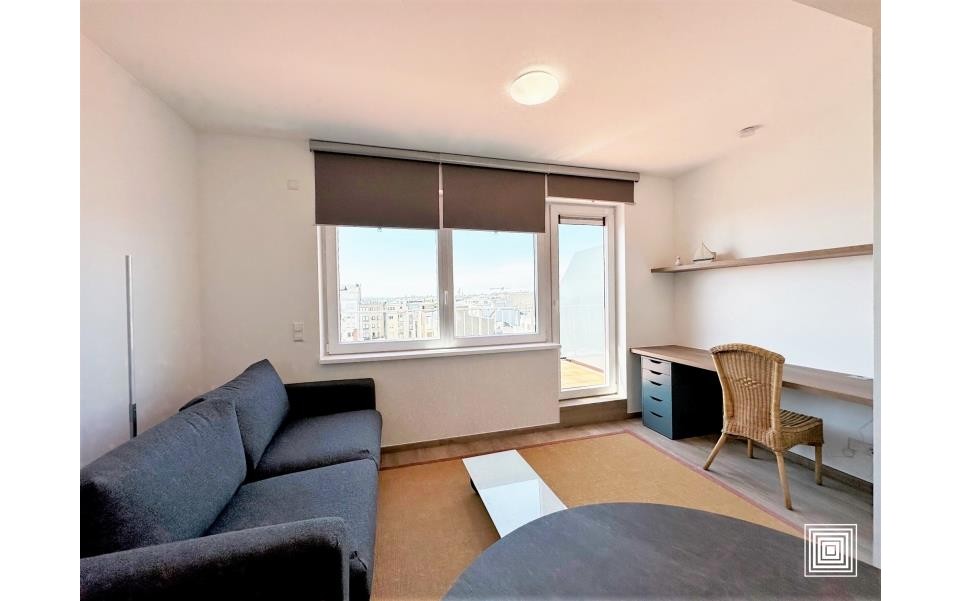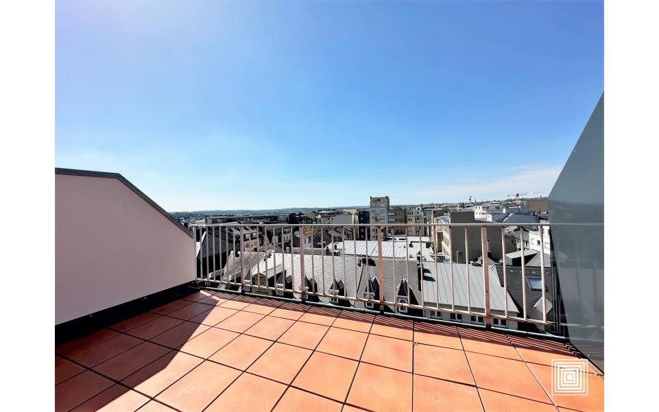 Penthouse, lumineux, entièrement rénové, 9e étage, ±47 m2, ascenseur, hall, living, cuisine, 1 chambre à coucher, salle de douches, 2 terrasses, vue dégagée, bail existant.