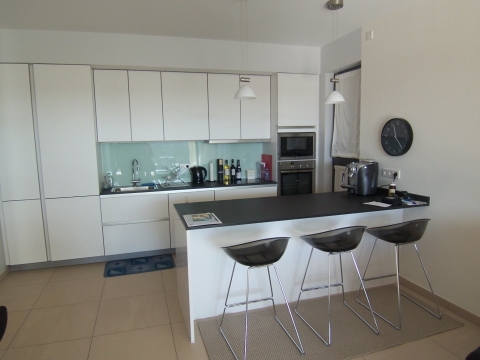 Appartement, moderne, lumineux, proche des institutions européennes, à 10 min du centre-ville, hall, vestiaire, living, cuisine américaine équipée, loggia, vue dégagée, 1 chambre à coucher, placard, salle de douches, cave, buanderie, parking intérieur.