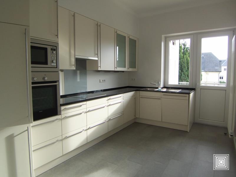 Appartement, proche du centre-ville, dans quartier résidentiel, entièrement rénové, avec beaucoup de charme, ±110 m2, hall, placard, living en L, balcon, cuisine équipée, 2 chambres à coucher, dont 1 avec salle de douches communicante, salle de bains, WC séparé, cave, garage.